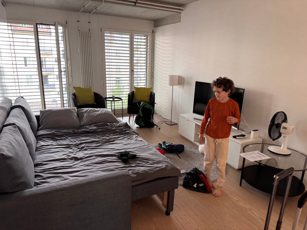 Jonas felt the shift in scenery as much as we did—excited by the city’s energy but already nostalgic for the quiet woods of Mürren. On the train, he cycled through wanting to eat, read, and “nap” in a silly, over-the-top way that made the ride lighter. He lit up when we arrived at the sleek apartment, but admitted he missed the mountain trails. We’ve learned that small compromises—like agreeing to a sweet treat now and then—can turn travel-day fatigue into something closer to family adventure.